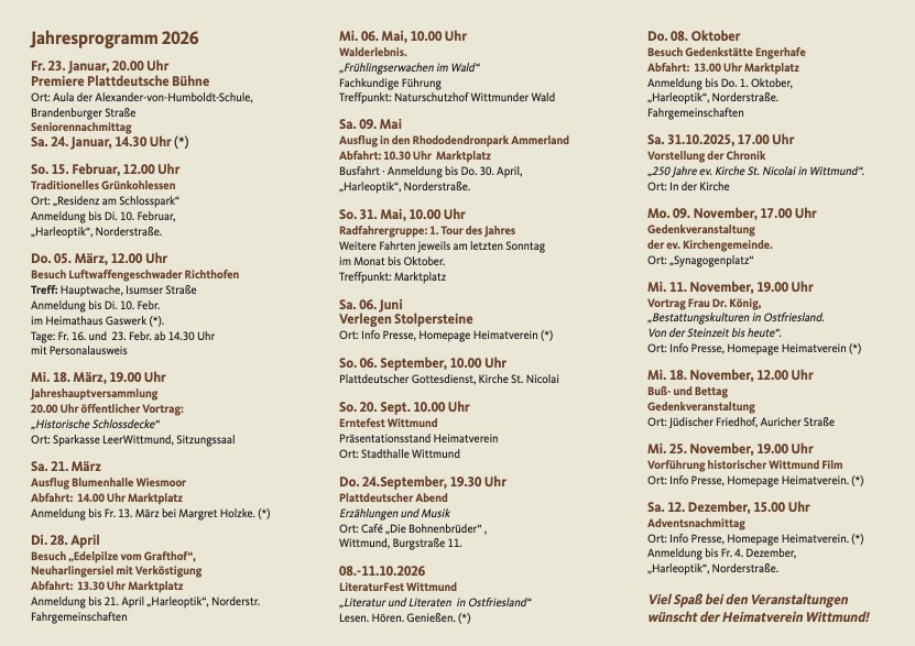 Der Heimatverein Wittmund e.V. stellt sein vielseitiges Jahresprogramm vor: